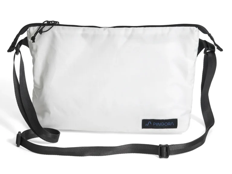 The All Adventure Accessory Bag carries essentials for travel or outdoor activities. Made from 100% recycled nylon, it blends functionality and sustainability, folding flat for easy organization.